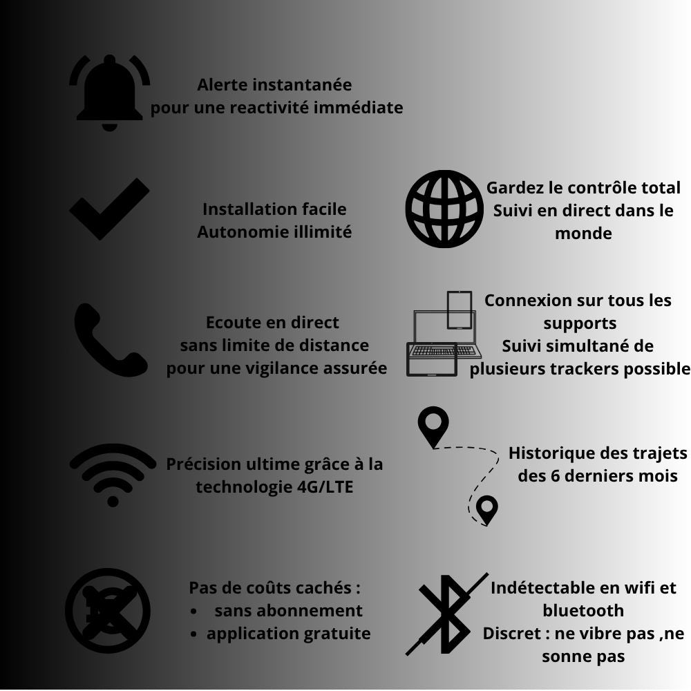 Une alerte retentit sur votre téléphone portable. Votre véhicule ne devrait pas bouger, pourtant quelque chose se passe. Le tracker vous appelle aussitôt, et vous pouvez aussi le contacter à tout moment pour écouter en direct. Une voix inconnue ou pas, une certitude qui se confirme : vous levez tout soupçon. En un instant, vous avez l’information qui fait la différence celle qui vous permet d’agir vite et de prendre les bonnes décisions.