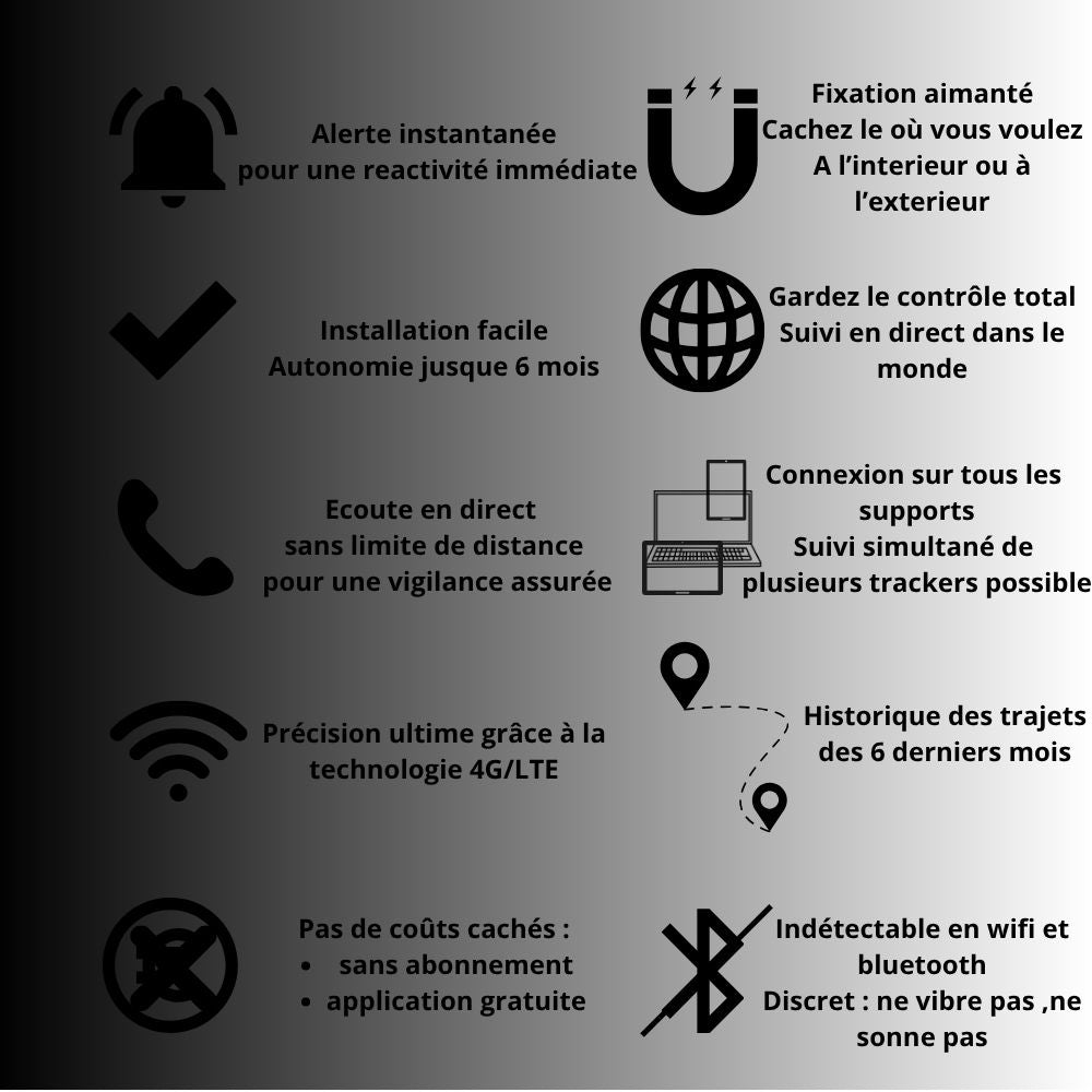 - - Un doute, une inquiétude ? Appelez le tracker à tout moment pour activer le micro et écouter, même si vous êtes à l’autre bout du monde.