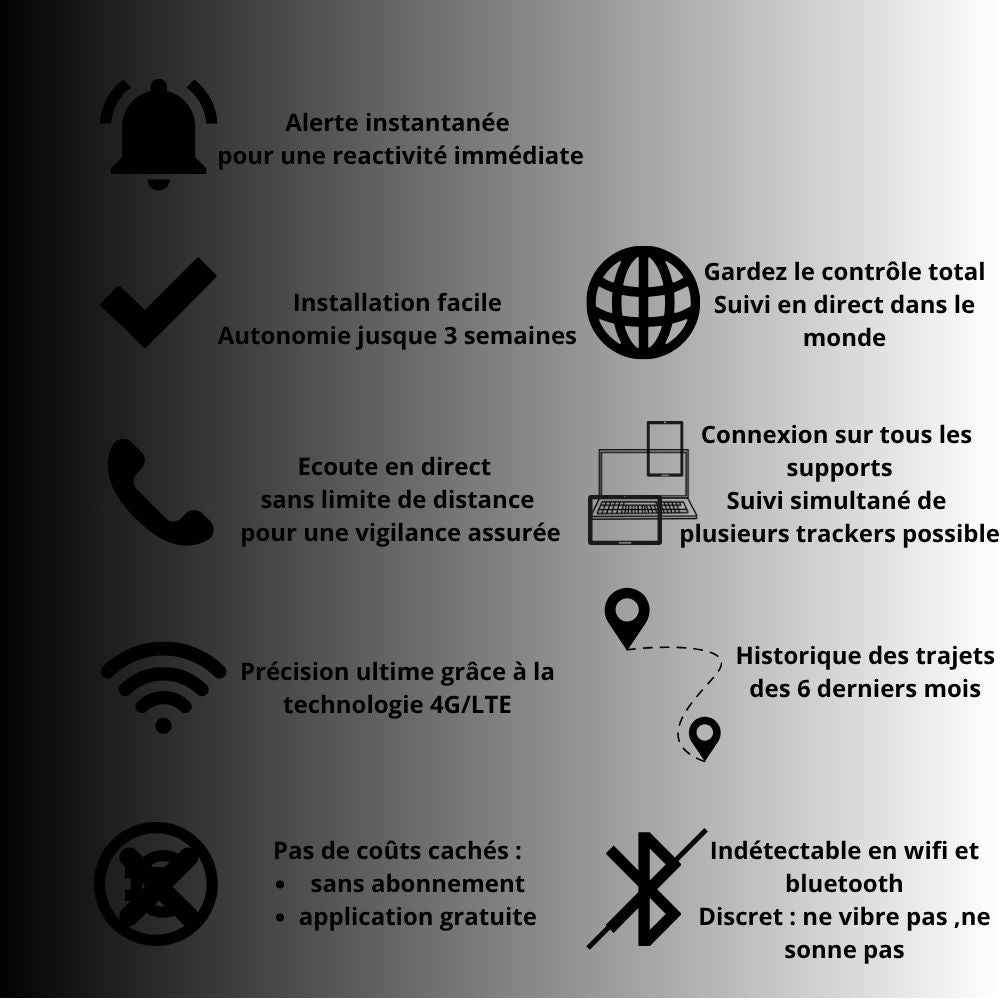 Paramétrez facilement le traceur GPS depuis votre tableau de bord et soyez alerté dès que quelque chose ne va pas. Si votre voiture est secouée, démarre ou dépasse un périmètre que vous avez défini, vous recevez une alerte et une alarme retentit dans le véhicule. De quoi effrayer et surprendre les voleurs. Une de vos vitres est brisée ? La voiture sort du garage ou de votre quartier ? Quelqu’un déconnecte votre traceur GPS ? Immédiatement une alarme sonne et vous êtes alerté par SMS et depuis l’application.